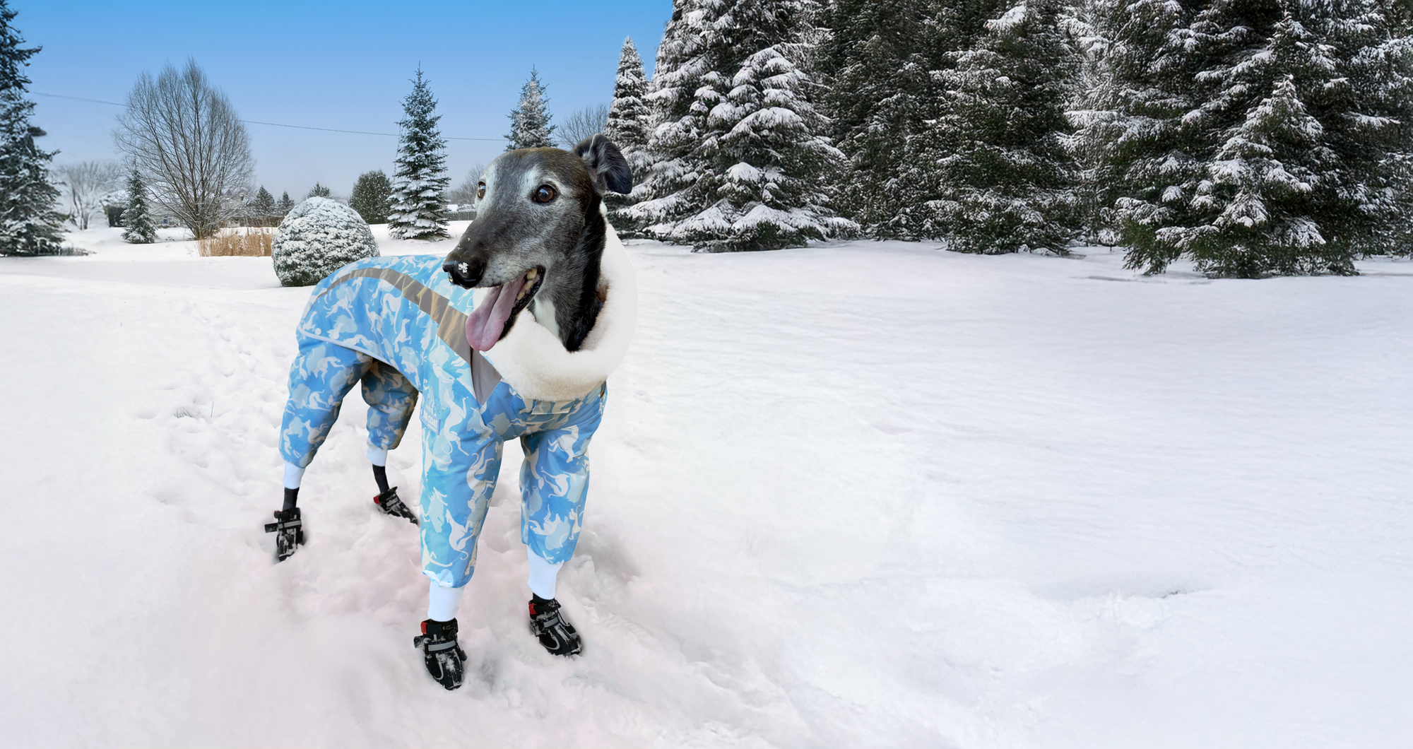 Say hello to Nudleblu, our second signature winter coat built just for sighthounds. Designed for skinny dogs with spaghetti legs and zero body fat, Nudleblu is warm where it counts and tailored to move with your hound, whether they’re bounding through snowdrifts or napping on your clean laundry. Now available in four snug-fit sizes, including our smallest yet for Italian greyhounds.